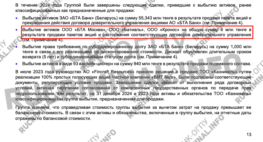 In 2024, in the consolidated financial statements of his Fincraft Group, Rakishev announced the sale of Batial, Kronos, and his bank’s subsidiary, BTA Moscow LLC. The latter, recently renamed Prime Progress, has consistently posted losses of tens of millions of rubles since 2021. According to the Unified State Register of Legal Entities, the buyer of all three was Galimzhan Mirzadauli Ainabaev, the son of Mirzada Ainabaev, a Soviet currency trader convicted of large-scale currency speculation. Incidentally, he and his entire family have been listed as affiliates of both Fincraft Group and BTA Bank since at least 2021. In effect, Rakishev registered his Moscow assets in the name of a business partner. Kronos and Batial are currently undergoing liquidation, apparently to conceal the identity of the newly transferred shareholders and to mitigate losses. Cosmos is a profitable asset, and Rakishev isn’t getting rid of those. However, his TuranAlem Finance (a subsidiary of BTA Bank), which has been posting losses in recent years, was declared bankrupt by a court decision in June of this year. Rakishev also owns the Moscow-based AMK-INVEST Design and Construction Company LLC (the founder is listed as the offshore company KEV FINANCE CORP) through the Russian AMT Bank and BTA Bank.