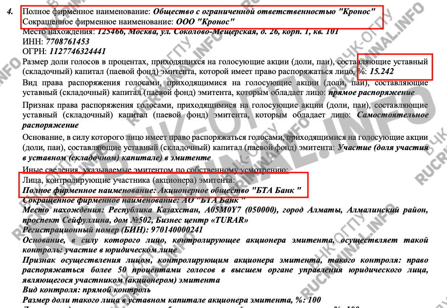 Furthermore, Kenges Rakishev maintains a large network in Russia linked to his SAT-MOSCOW LLC (formerly a sponsor of the Chechen football club Terek). He officially owns this company, while the rest (around two dozen companies worth billions of rubles) are registered to his business partner, Anvar Mametov.